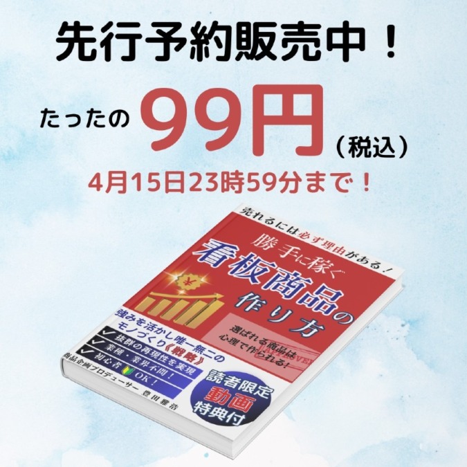 99円の特別価格は今日で終わります!