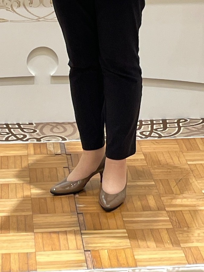 以前足のサイズ計測をしてオーダーパンプスをご注文いただいた方です。 キレイに履かれています。